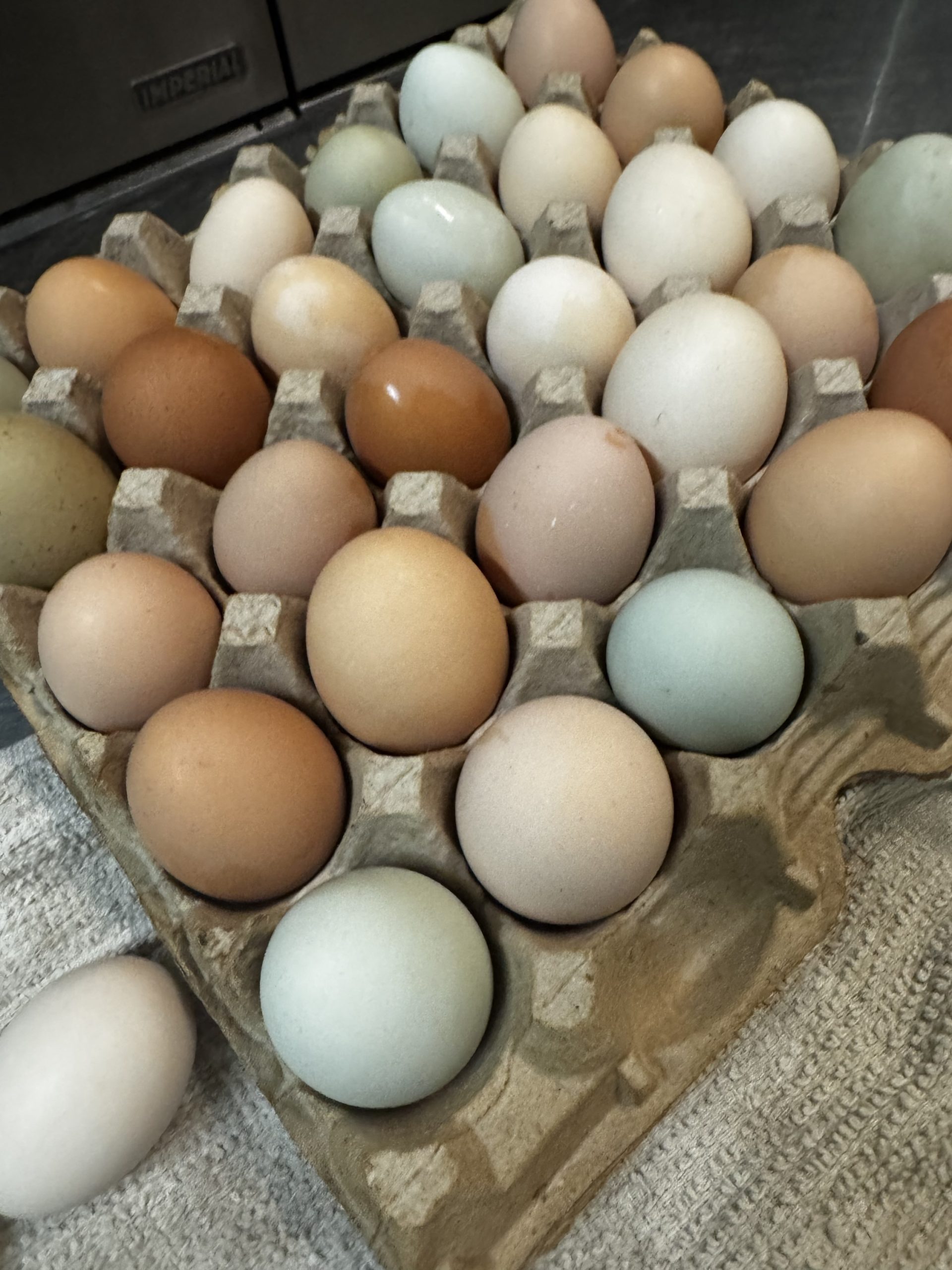 Eggs are mixed breeds so egg size and color varies.